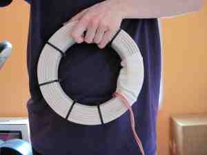 To be honest, I usually coil sitting or lying down with the coil on top of the body part I’m treating. In part, this is because it gets hot after a few minutes and in part because it is so heavy. So here is a photo of the coil sitting on my bed, on top of the towel I place between the coil and myself so I don’t get burned.