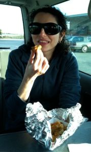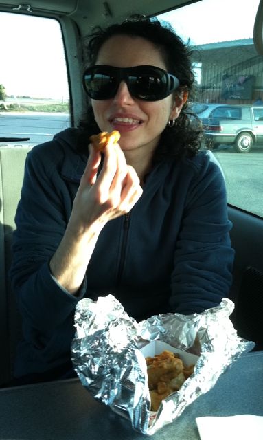 In addition to San Francisco, I went to my boyfriend’s house in Watsonville for 10 days to celebrate my birthday. We had a blast. We ate fresh, locally caught, tasty (and low mercury) fish and sea food. We walked on the beach several times. I had deep fried artichoke hearts! Who knew there was such a delicious treat waiting to be discovered on the side of the road to Santa Cruz? We visited several beaches and caught glimpses of dolphins, sea lions, multitudes of birds. I found out what a slough is and went walking along one, listening to frogs and scouting out coots.
