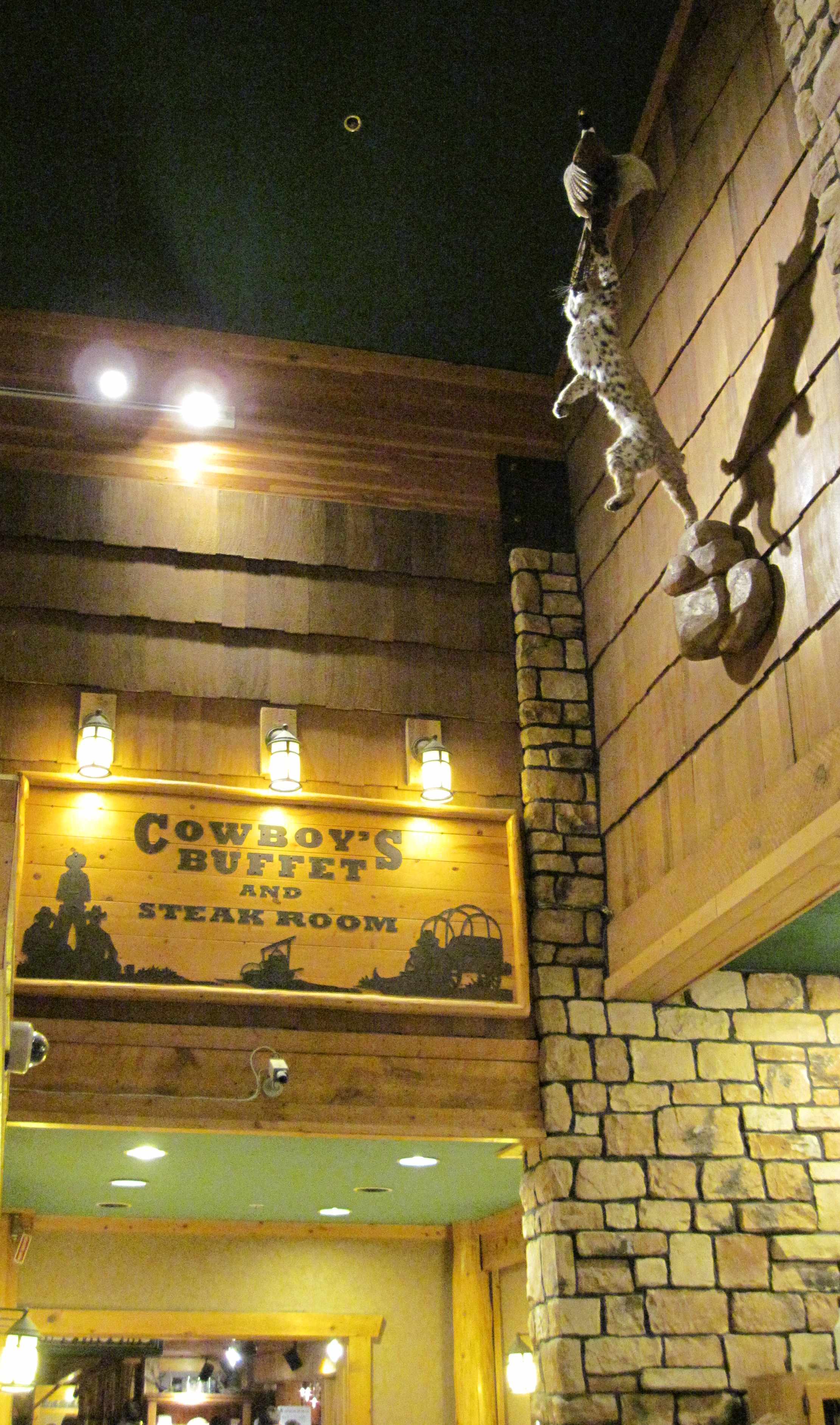 By the time we got near Bryce Canyon National Park, a 3-4 hour drive away, it was below freezing, and snow was falling. We decided to stay at Ruby’s Inn. It was the perfect mix of warm, near food, and cowboy/western/hunter lodge atmosphere.