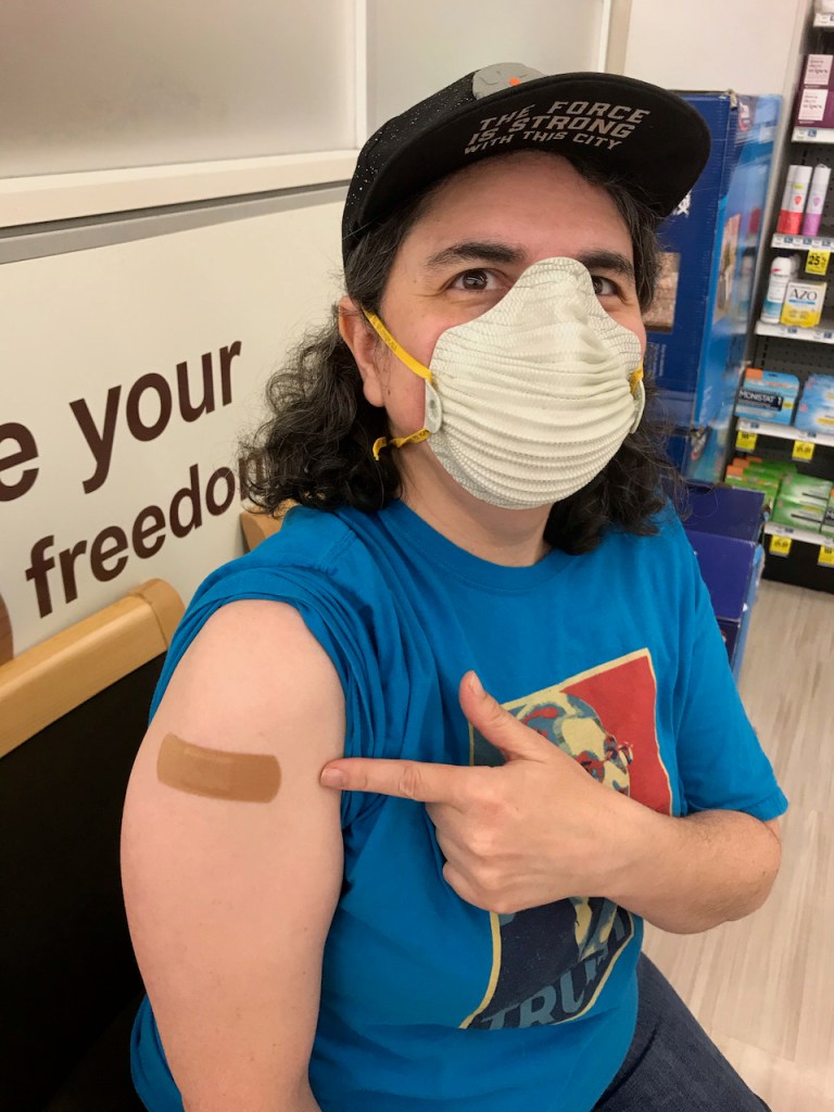 The vaccine itself pinched for a moment. My arm got sore pretty soon. The soreness increased for the rest of the day and the next day. By the second day after, it was calming down. By the night of the third day after, the tenderness was gone. That wasn’t so bad. I was tired, sleepy even, after the vaccine. However, I’d had a very busy day, trying to prepare easy-to-heat meals and getting the last few things done that were due for the next two weeks. I was actually ready for a nap before I got vaccinated. I remained fatigued the next day, indulging in three naps, and still was ready for bed by eight o’clock. I would say that was it for the vaccine itself.